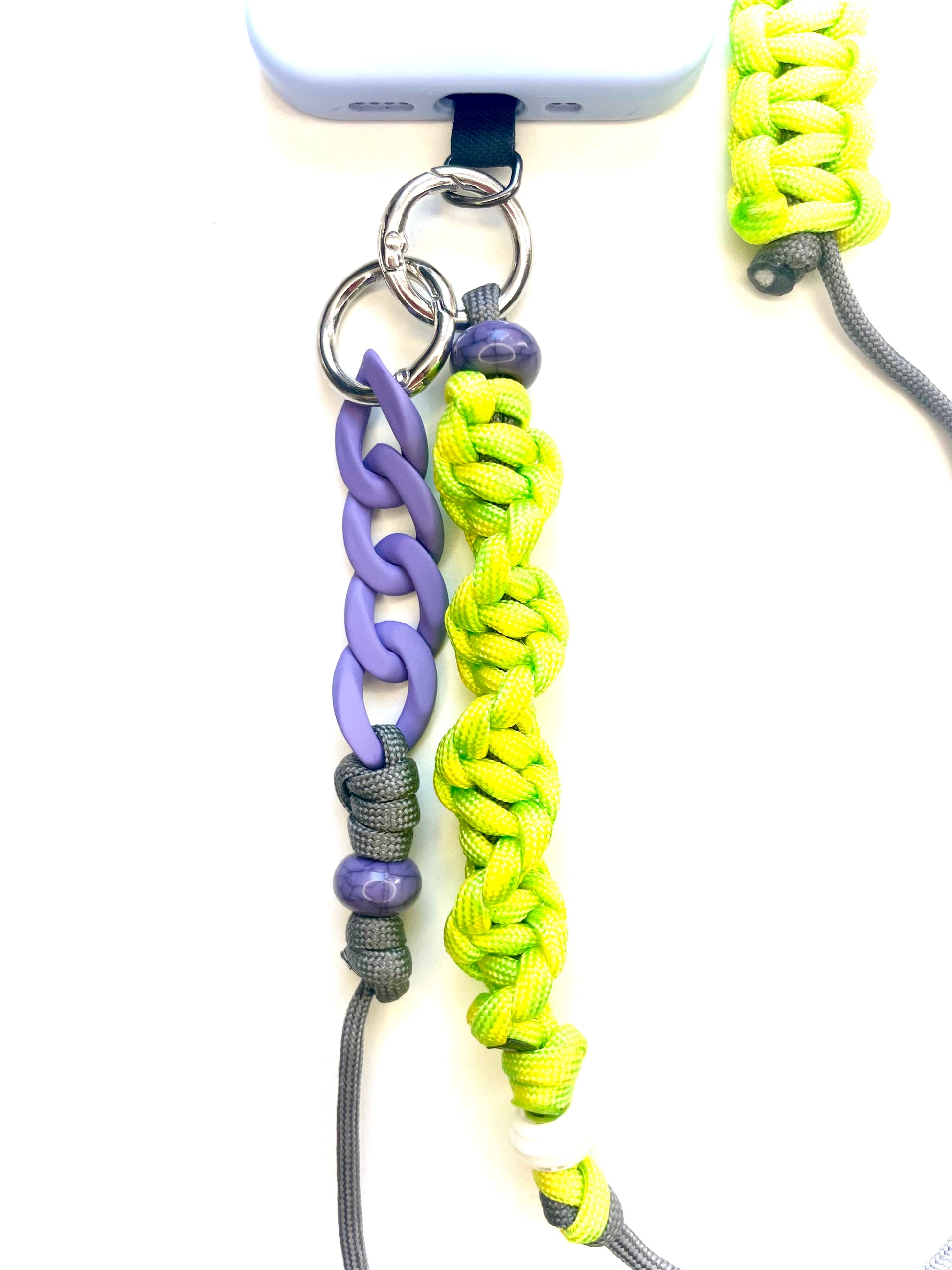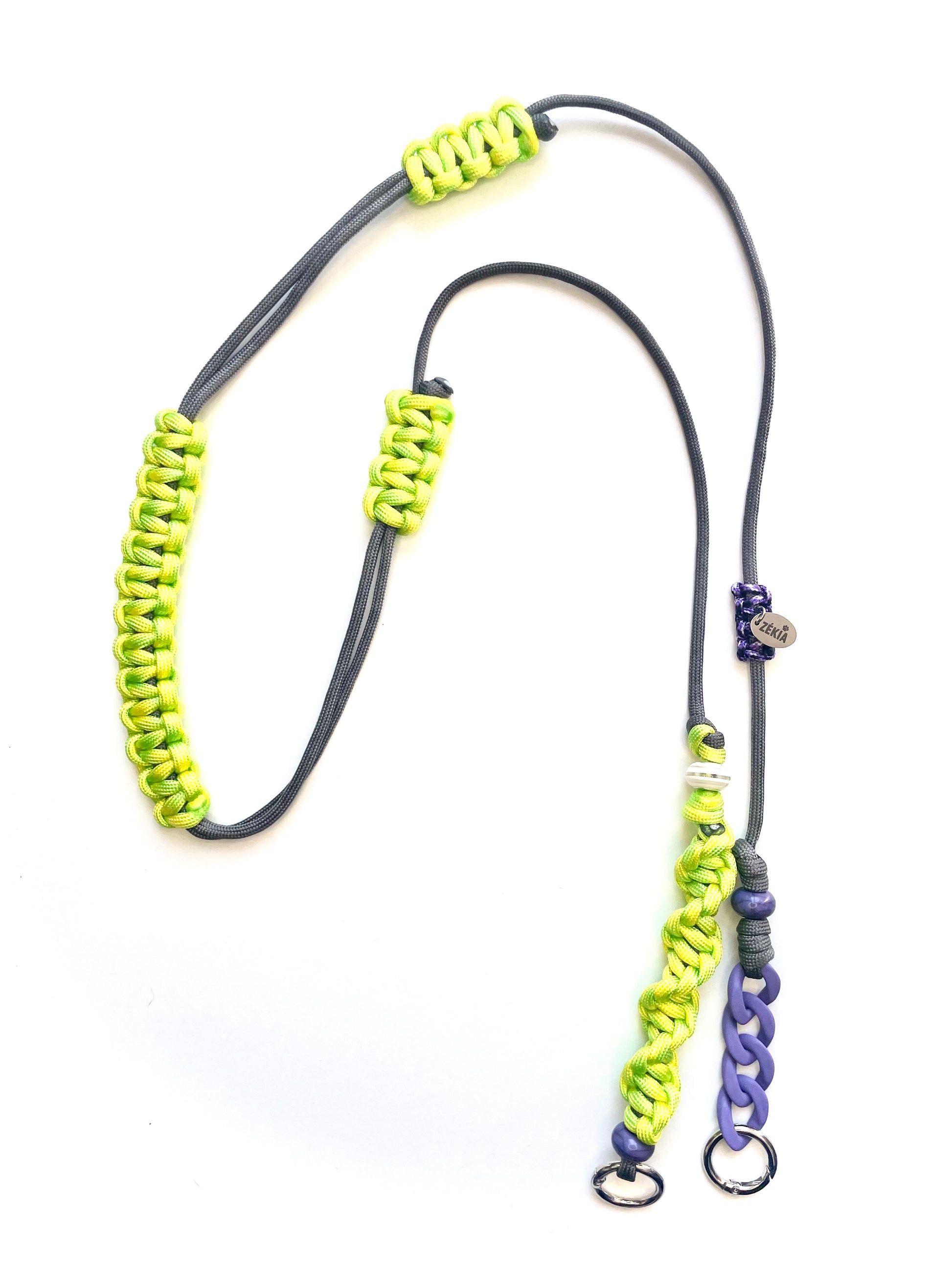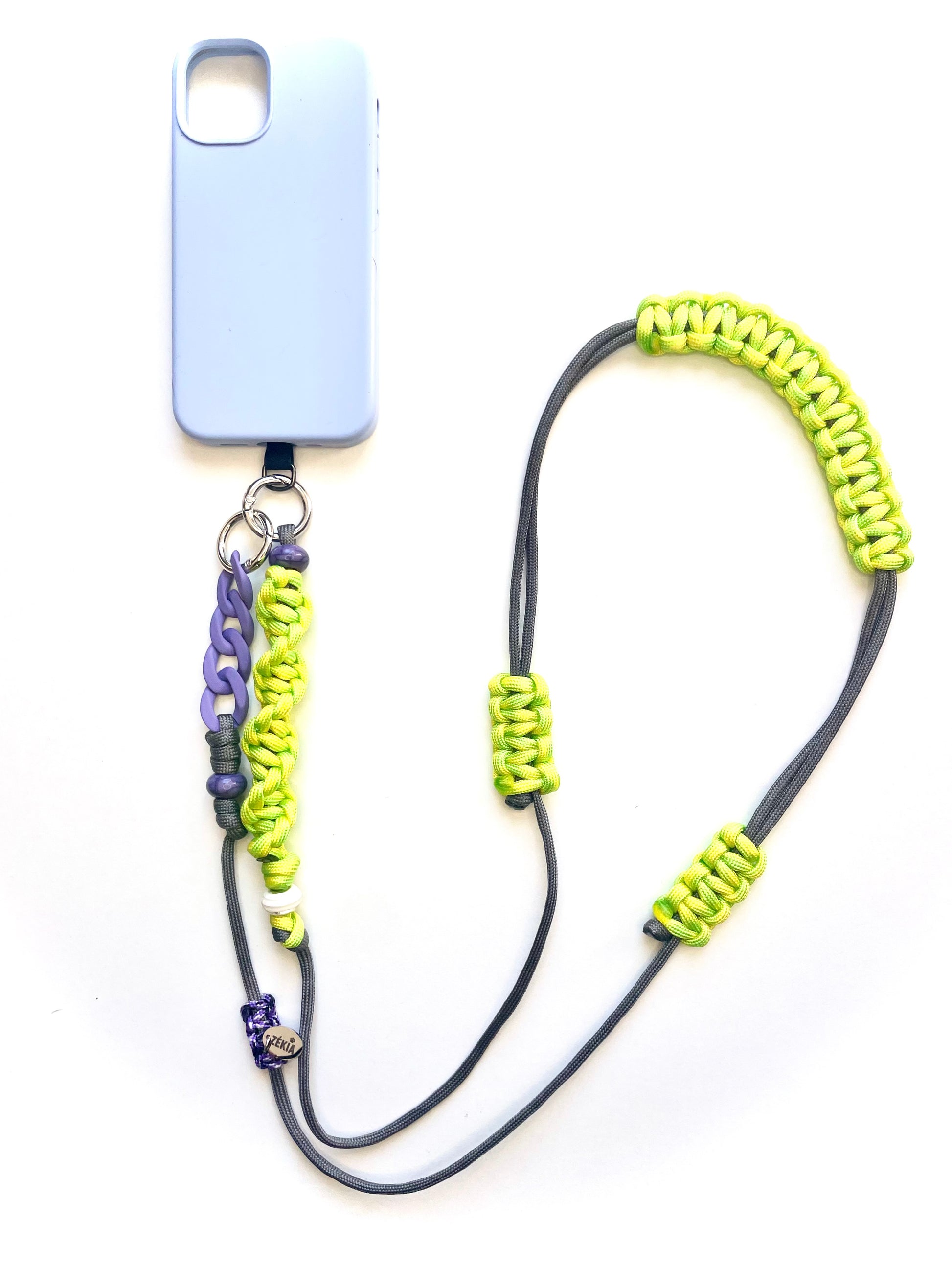 Un gris anthracite et un jaune-vert fluorescent, une alliance qui dégage une énergie électrique et vibrante. Un cordon de téléphone ajustable, unique et artisanale, pensé pour un style intrépide et indomptable.