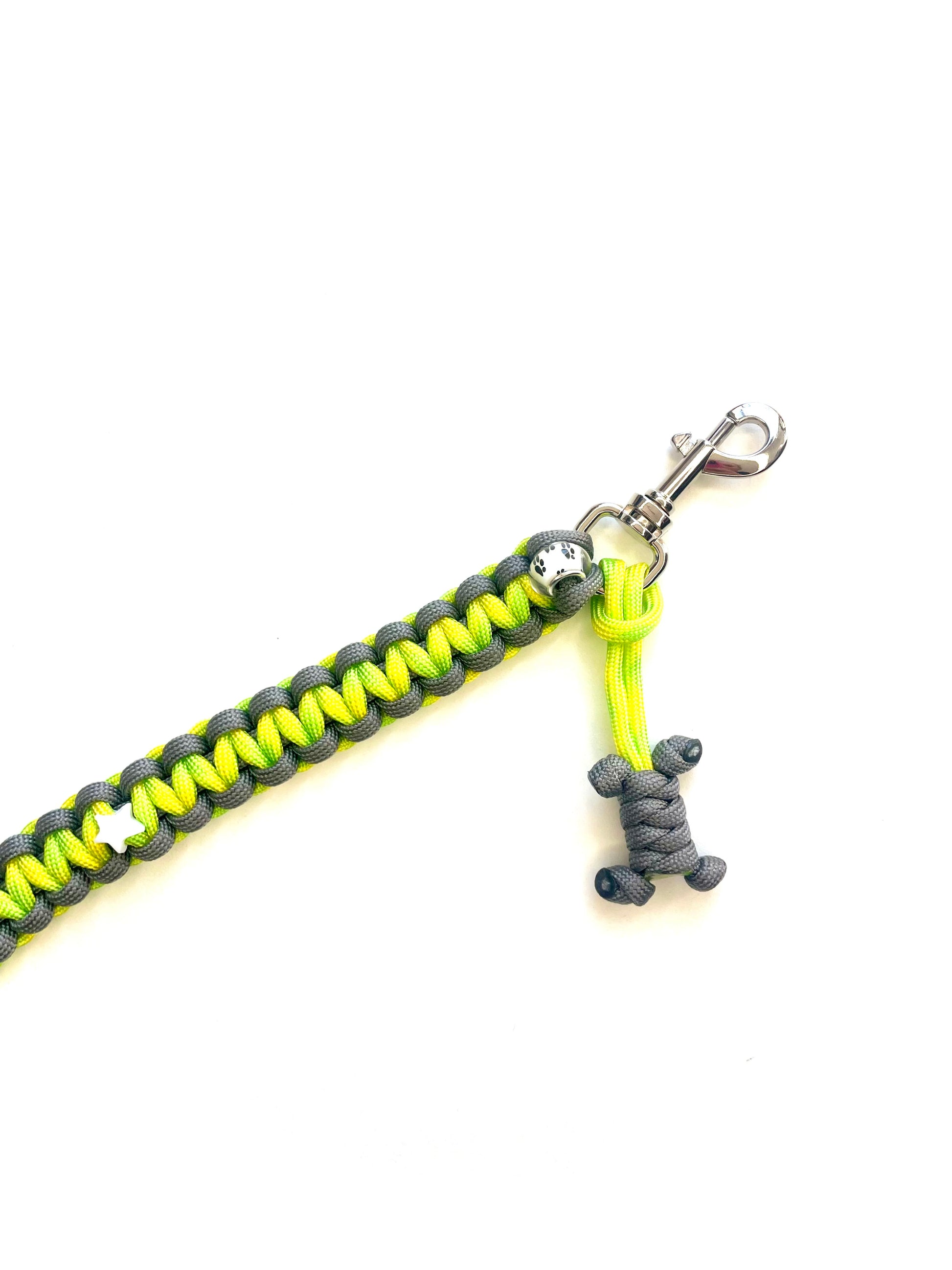Chaque laisse est tressée en paracorde de nylon haute résistante, une fibre légère, souple et durable utilisée à l'origine pour les cordages d'alpinisme.