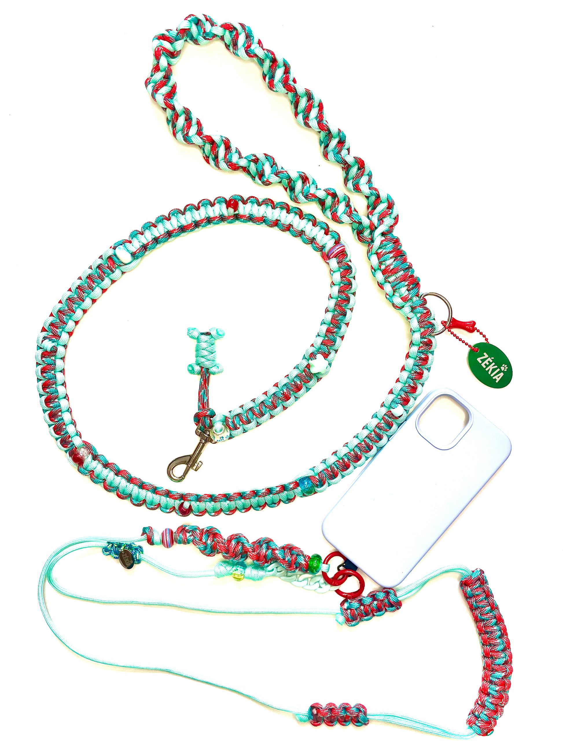 Pensées comme de véritables pièces de duo, les laisses ZÉKIA s'accordent avec les cordons de téléphone et charms assortis. Un concept matchy-matchy unique : un lien tissé qui affiche, avec style, la complicité entre vous et votre chien.