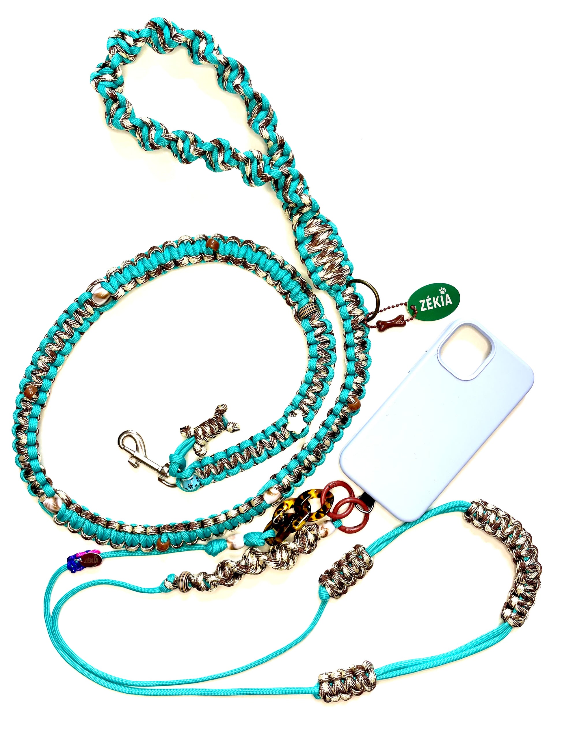 Pensées comme de véritables pièces de duo, les laisses ZÉKIA s'accordent avec les cordons de téléphone et charms assortis. Un concept matchy-matchy unique : un lien tissé qui affiche, avec style, la complicité entre vous et votre chien.