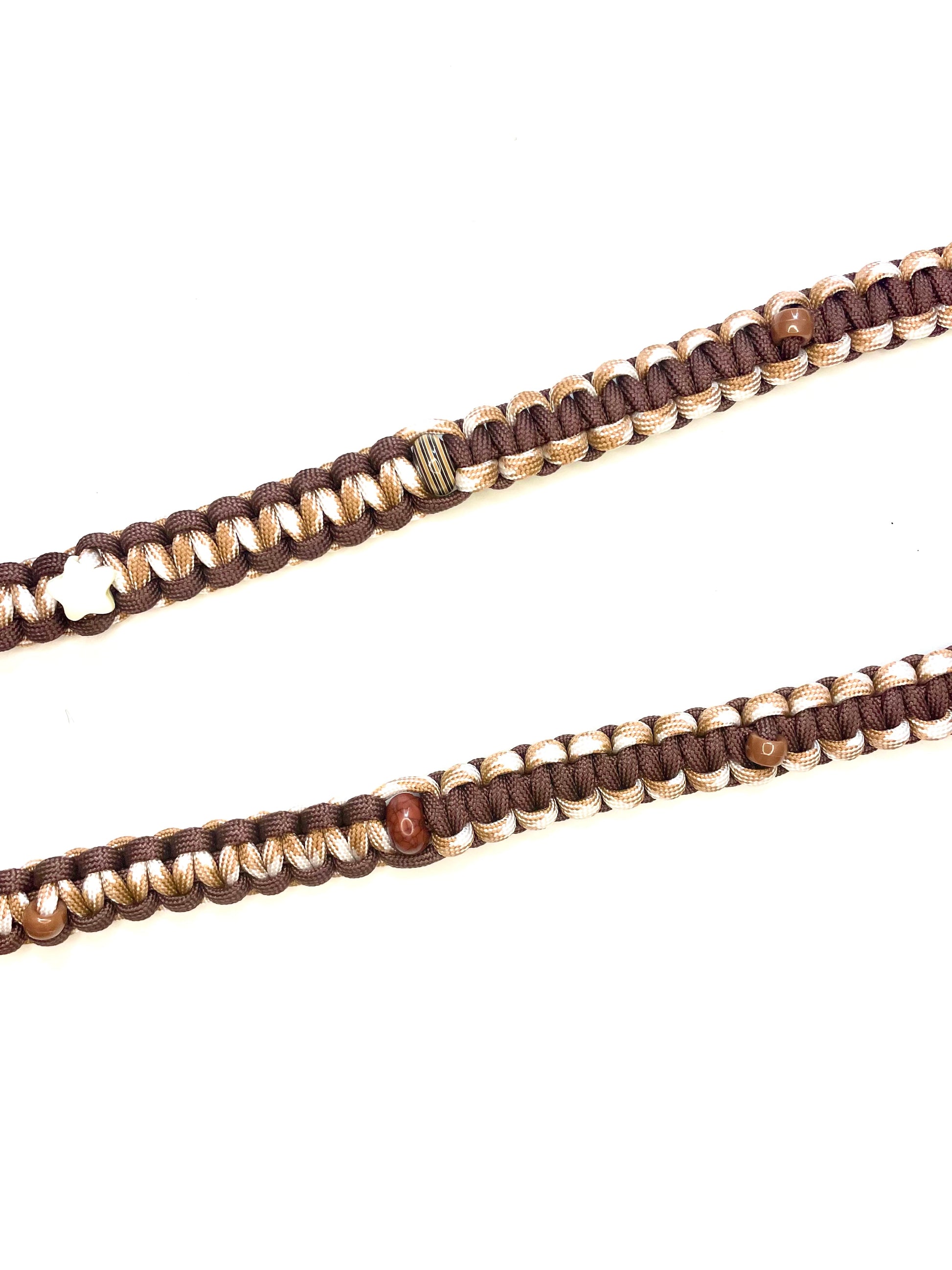 Mocha Vibe - un brun espresso relevé par un beige latte et des éclats crème. Une laisse artisanale, pensée pour un duo raffiné et chaleureux.