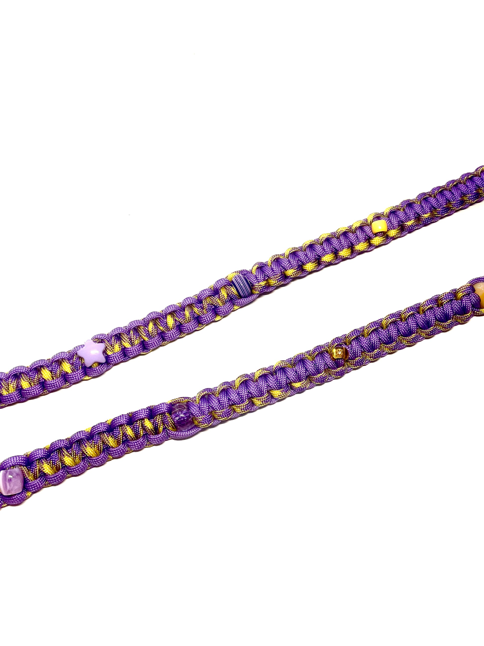 Vivid Pulse - un violet électrique sublimé par l'éclat d'un jaune solaire. Une laisse artisanale, pensée pour un duo expressif et plein d'éclat.